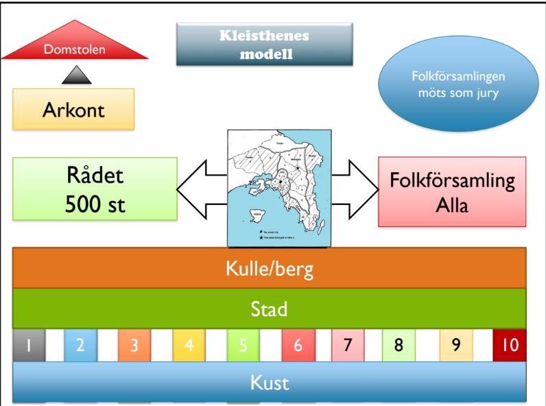 (OBS siffrorna 1-10 är alla demes som Kleisthenes delade in folket i)