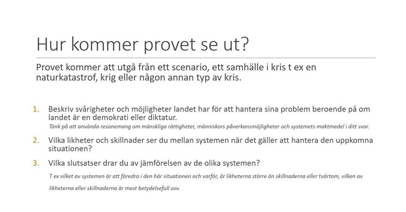 Hej! Jag ska snart ha prov på demokrati och diktatur och vårat prov kommer bestå av tre frågor(se nedan).