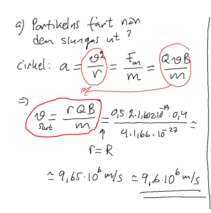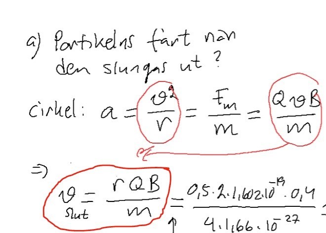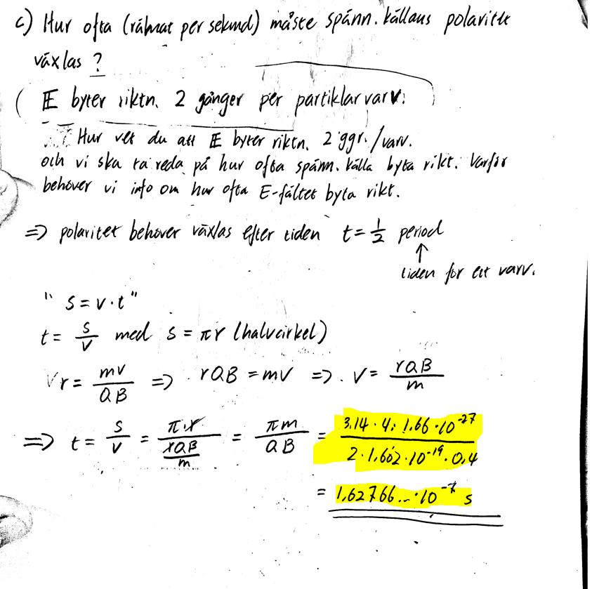 Eller hur stort är B-fältet? Uppgiften säger 0,8 tesla, du verkar räkna med 0,4 T.