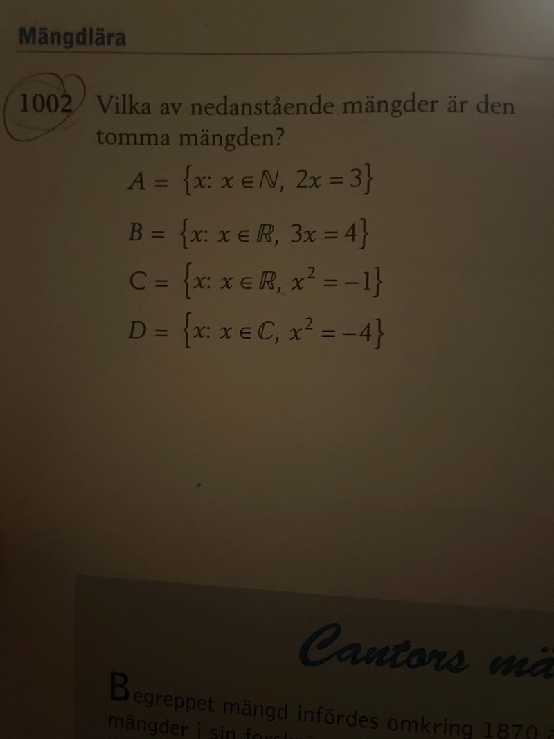 (De här är matte spec, visste ej om ja skulle välja matte 5 eller högskola..) Hej jag förstår inte riktigt vad den tomma mängden är gör något? Det står i boken att den inte innehåller några element. Vad betyder detta, och vad är ett element?