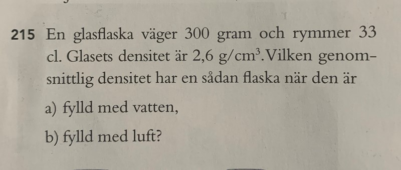 Ja du ska använda samma metod, men skillnaden är att i b-uppgiften är flaskan fylld med luft istället för med vatten.