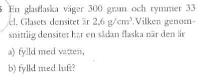 Smaragdalena skrev:Luften i flaskan väger så lite (ungefär 0,4 gram) att du kan försumma luftens massa. Vi vet ju inte ens om flaskans massa är angiven med 1, 2 eller 3 siffror noggrannhet.