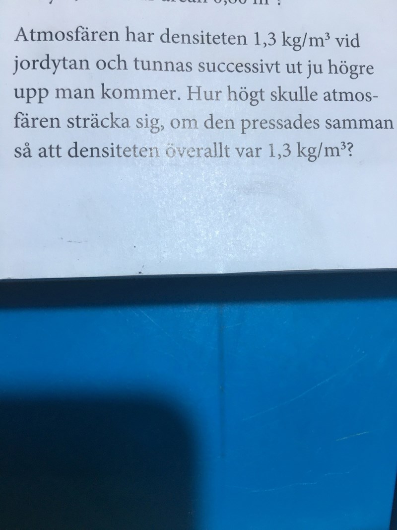 Om du slår upp hur stort normalt lufttryck är, kan du räkna ut massan för en pelare av luft som har basarean 1 m2. Kommer du vidare?