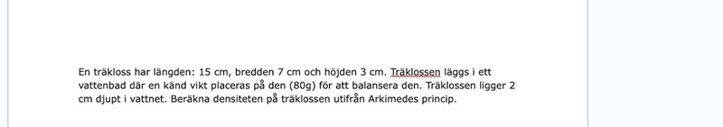 Laguna skrev:Du måste ha med klossens vikt också. Den plus 80g väger lika mycket som det undanträngda vattnet.