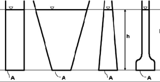 Enligt Pascals lag kommer deras vätsketryck mot botten att vara samma på grund av att de här formerna har samma höjd. (p =ρ⋅g⋅h).