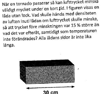 Matsmats skrev:Så vänsterledet är bara P * (en konstant). Alltså P * (en konstant) = densiteten * (en annan konstant)