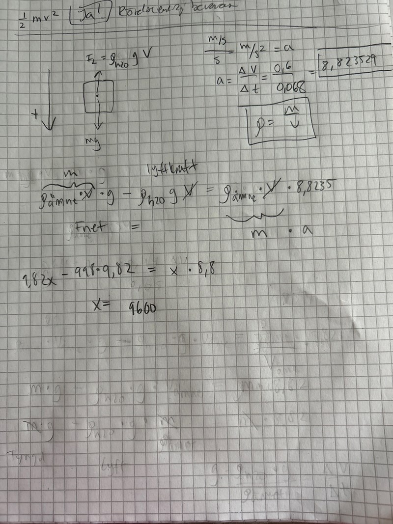 Det är svårt att läsa av grafen när man inte har den framför sig, men anledningen till att du får ett så stort svar är för att du svarat i SI enheten kg/m3 och inte den dom frågat efter g/cm3😊