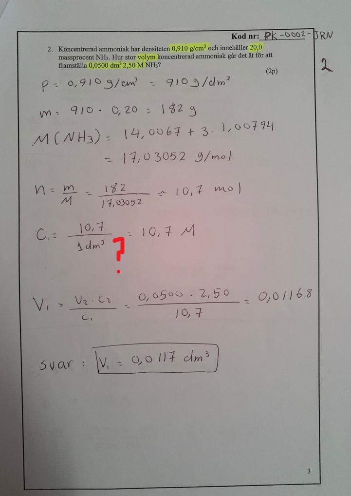 Och motsvarande presenteras densiteten för 1 dm3 (första raden), så att massan m.h.a. massprocenten ger ett svar i gram (rad två), som du noterade Bubo.