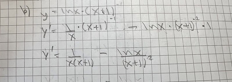 förstår inte hur jag ska derivera b uppgiften kom såhär långt: