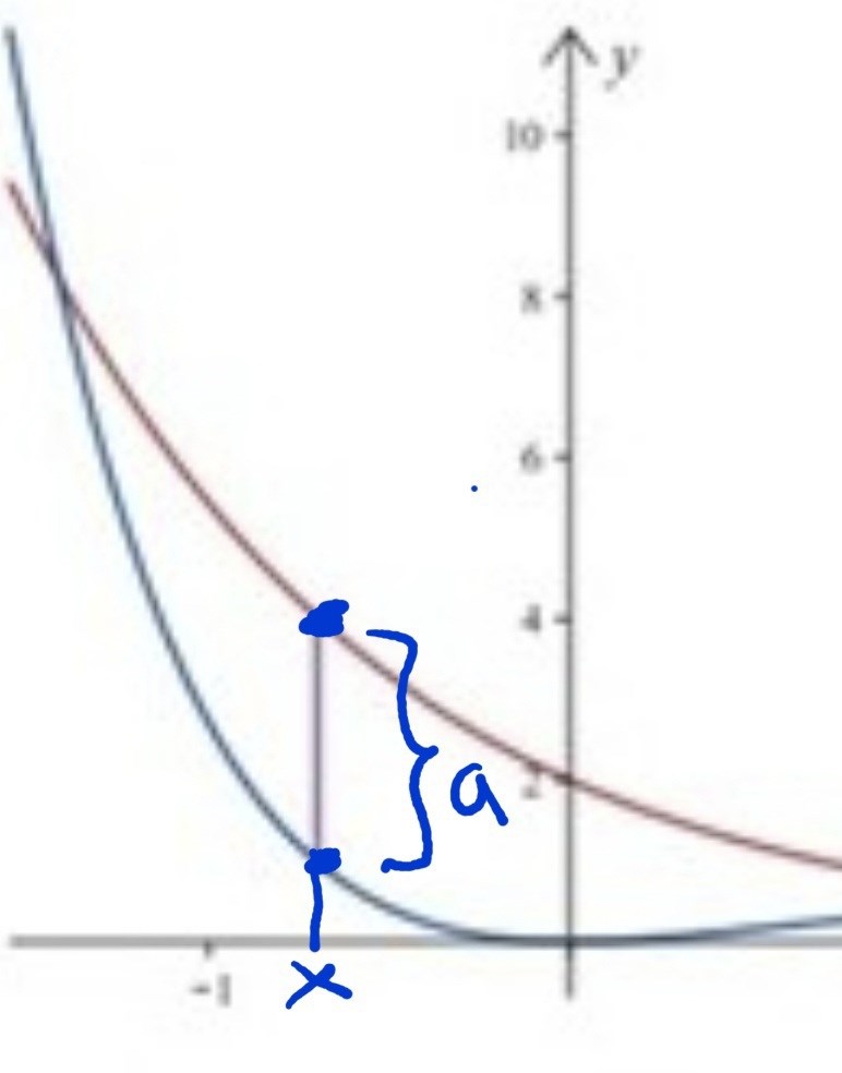 Längden av sträckan vid ett visst x-värde är lika med skillnaden i höjd mellan graferna.