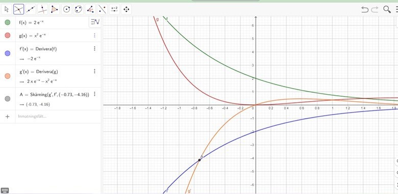 Jag hänger inte riktigt med hur jag ska göra, jag tänkte skärningspunkten av derivatan av funktionerna..