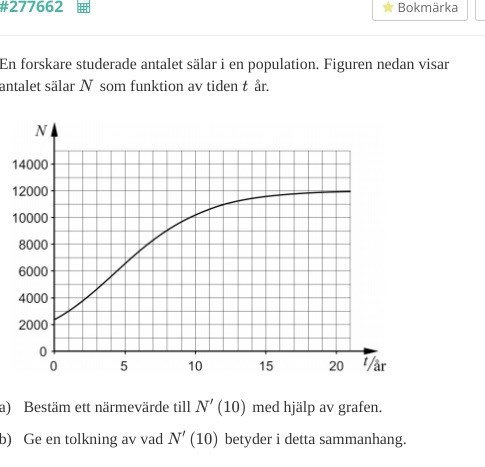 Surachit skrev:Om du ritar en tangent till grafen N vid t=10 och räknar ut lutningen på tangenten så har du löst vad derivatan på funktionen är vid den punkten också.