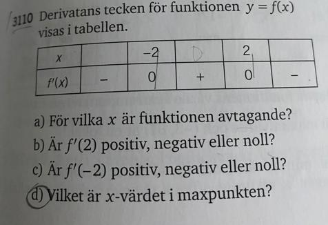 Ja skrev bara fel annars har kollat rätt i facit, på samma fråga d tänker jag att maxpunkten är -2 men facit säger 2, hur mycket stämmer detta då?