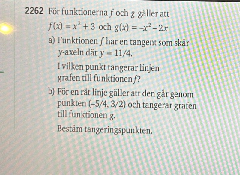 jag har tänkt att kx+m och m är då 11/4 och x är 0, sedan vet jag dock inte vad jag ska göra, och jag vet att derivatan är 2x men vad hjälpr det mig
