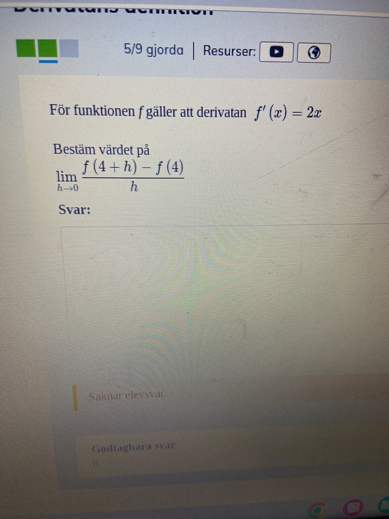 Kan du förklara mer? För har jag inte använt mig av derivatas definition?