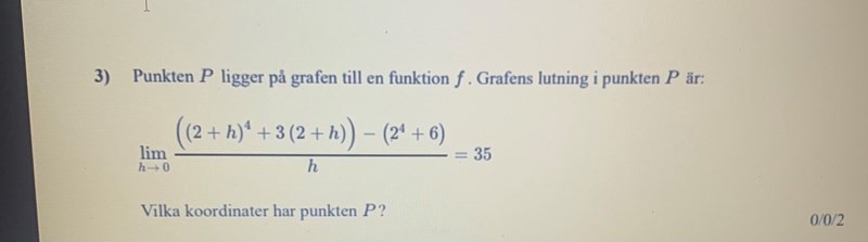 Arktos skrev:35 är grafens lutning i punkten P = (2; f(2))