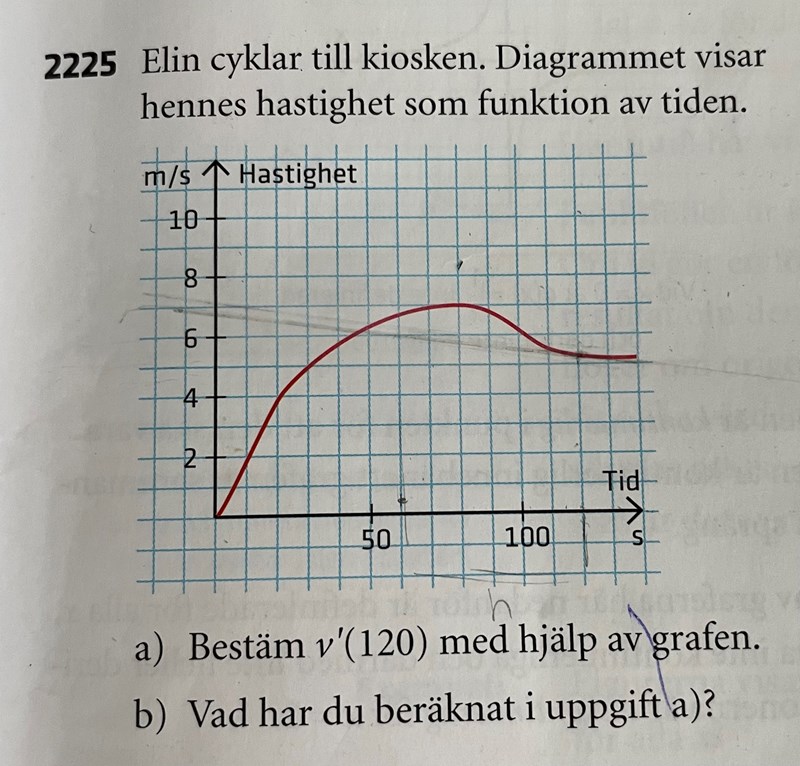 Hur löser jag a)? Är det derivatan vid v’(120) man ska räkna ut?