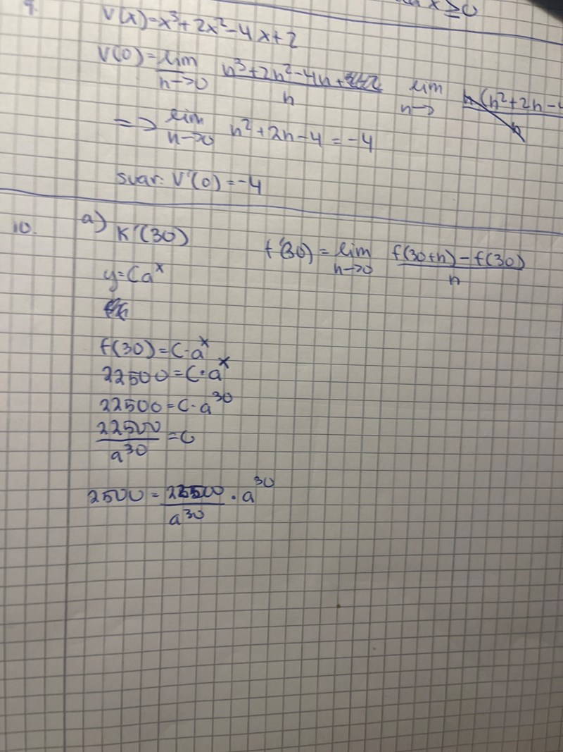 Sedan kan du derivera exponentialuttrycket och beräkna K'(30)K'(30)