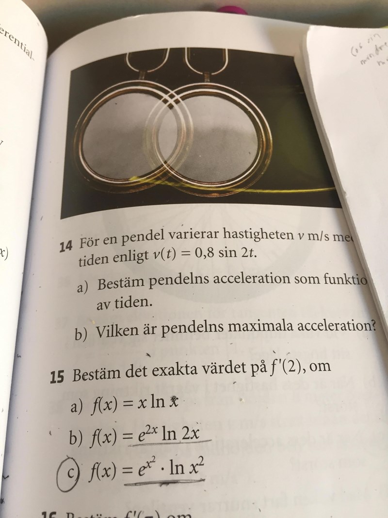 Hej jag behöver hjälp med att lösa en uppgift som handlar om derivata. Det är uppgift 15 c)
