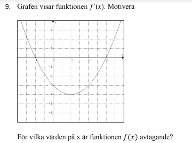 Att en funktion är.avtagande innebär att funktionsvärdet minskar (eller är konstant) då x ökar.