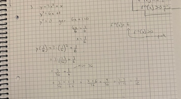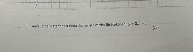 för att verifiera att x=-(1/6) leder till det minsta värdet föroriginal funktionen (3x^2)+x