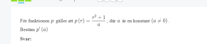 Derivera p(r) så att du får p’(r). Sätt sedan in a i p’(r).