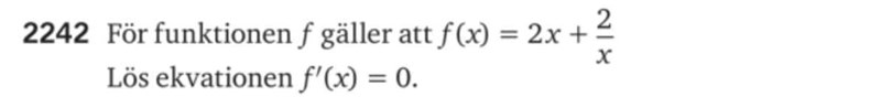 Vad ska man göra här? Jag trodde man skulle derivera F(x) men svaret ska bli X=+- 1