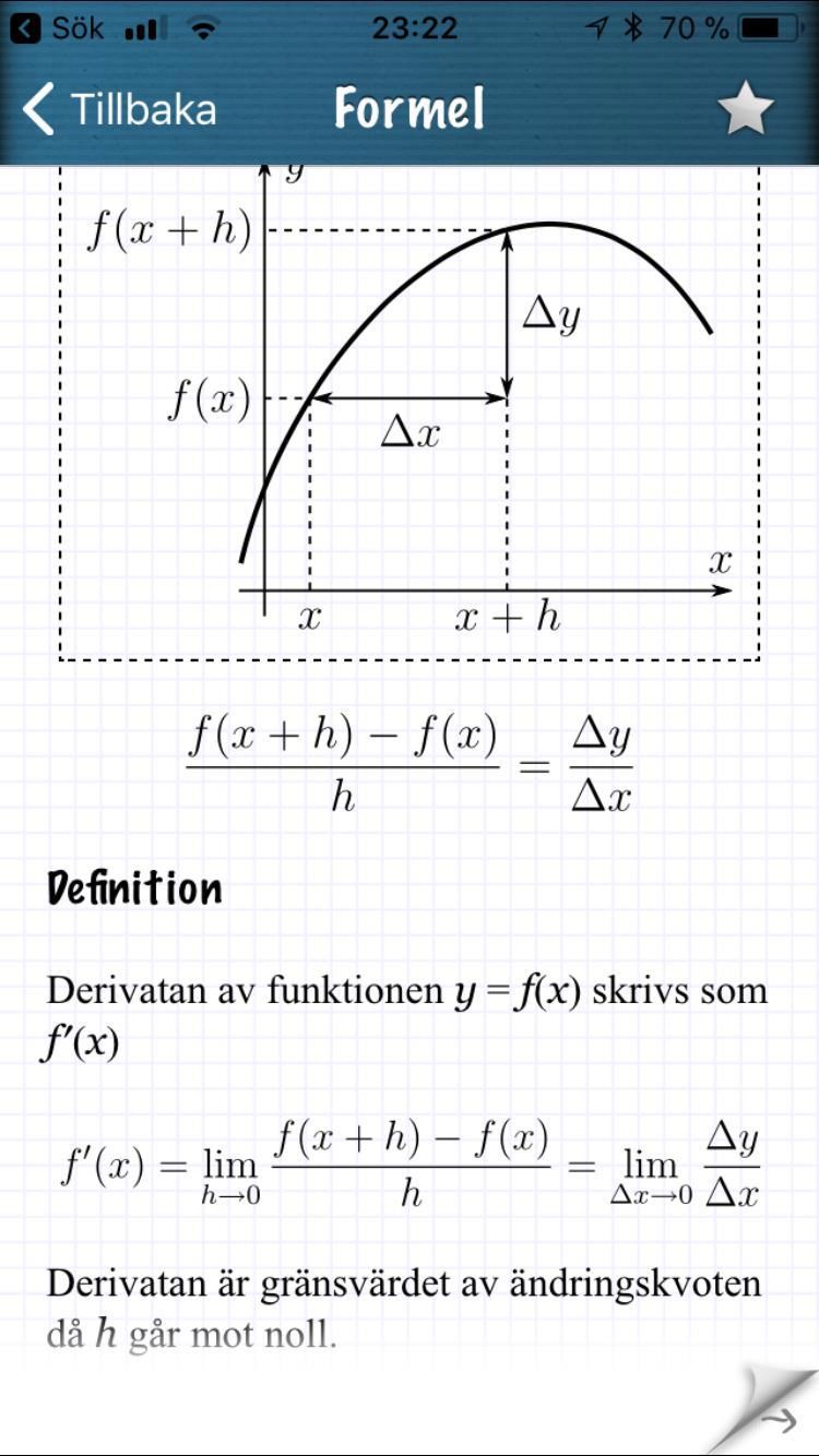 Låt och beräkna funktionens derivata i punkten med hjälp av derivatans definition.