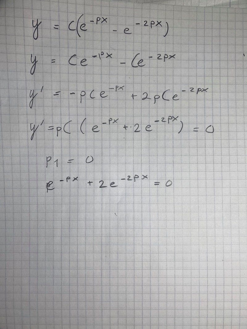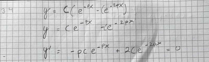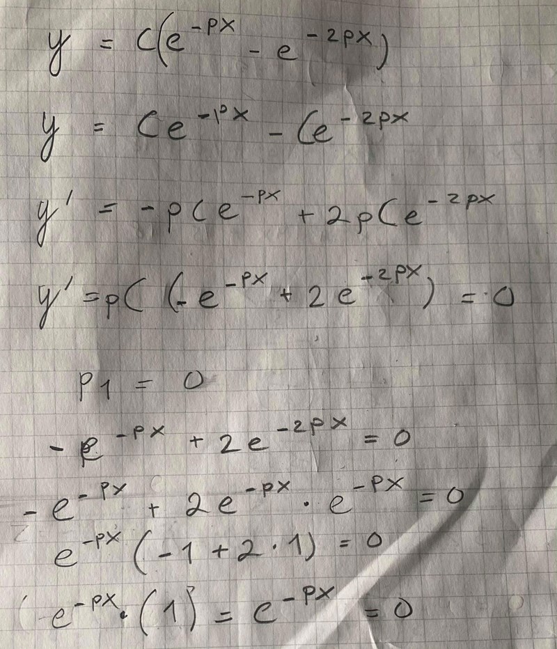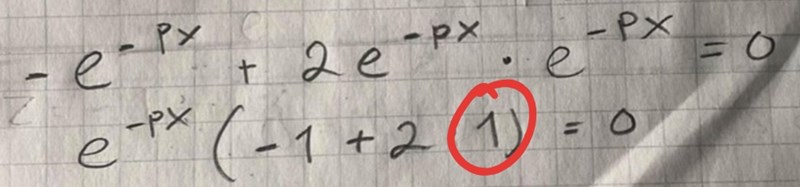 Kommer fram till att e^-px blir 0 och det känns ju konstigt, för om jag tar ln så är ln 0 ej definierbart, hur ska jag ta mig vidare?