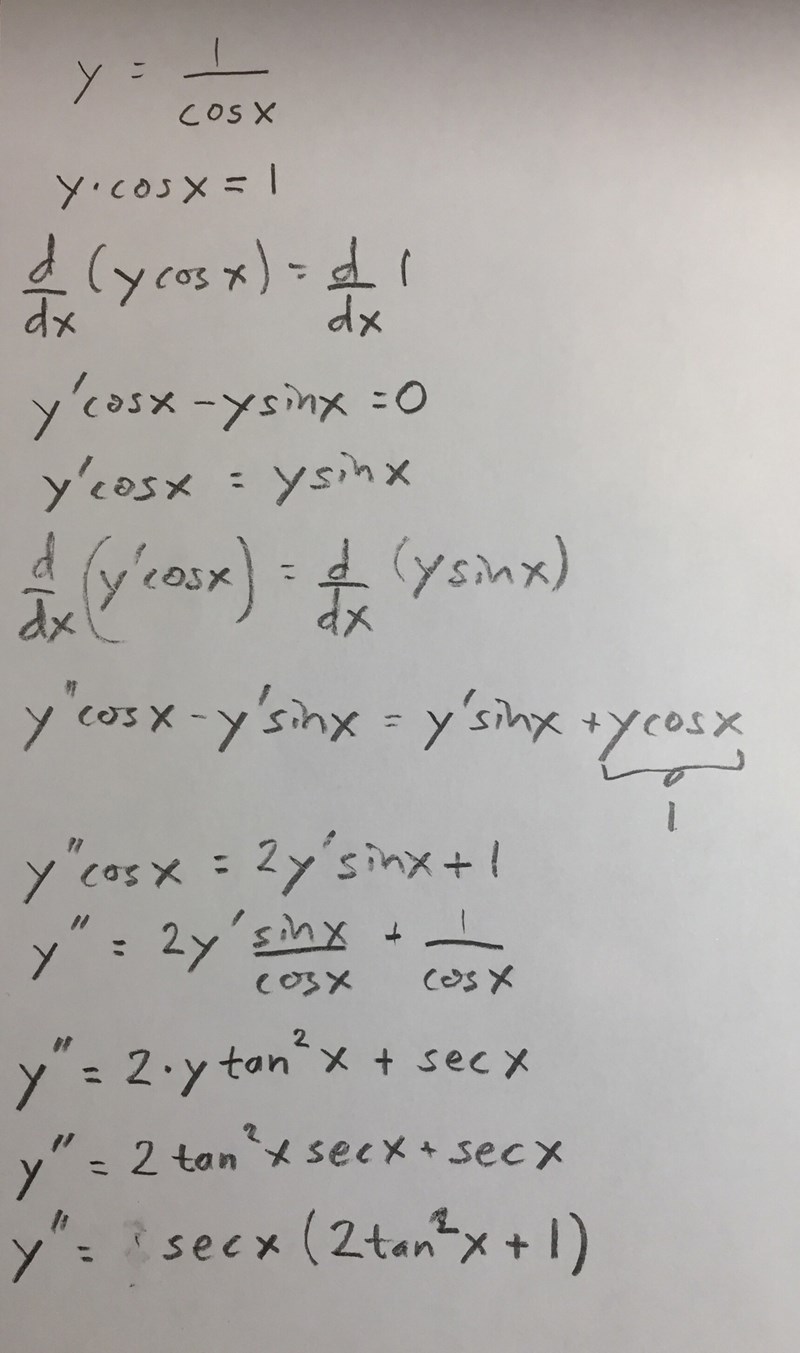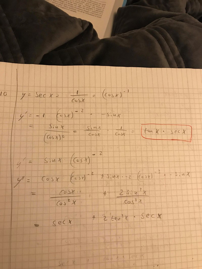 I facit har de svarat att andraderivatan blir secx * (tanx)^2 + (secx)^3