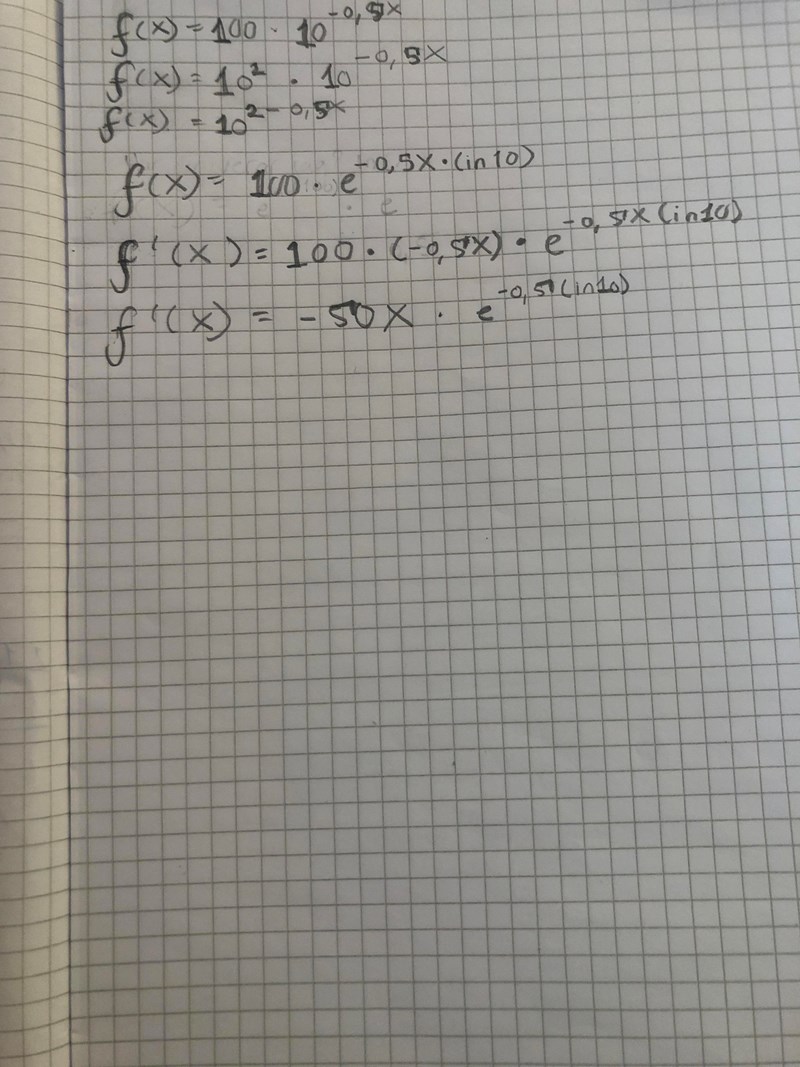 f(x)=100*10^ (-0.5x)= 100*e^In(10^-0.5x)