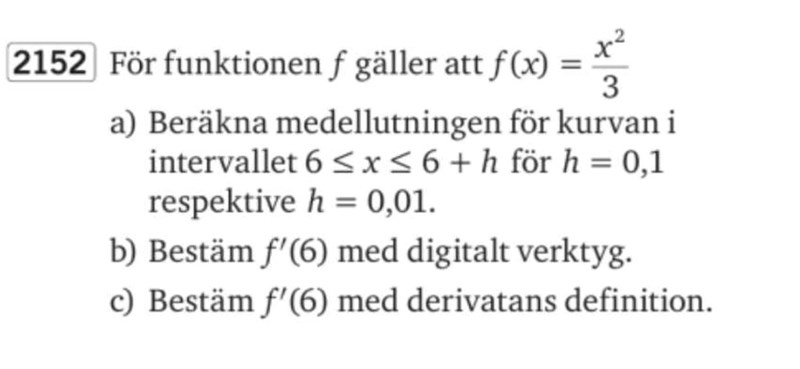 Du ska göra två olika beräkningar av medellutning. En för h = 0,1 och en för h = 0,01.