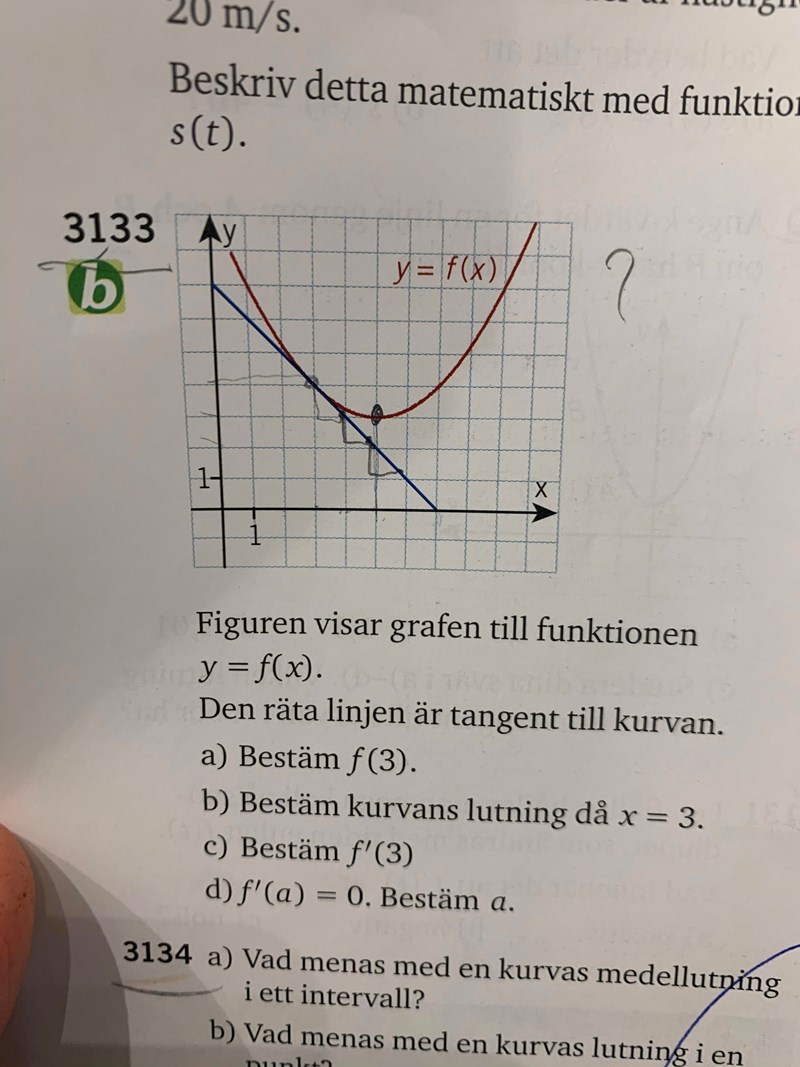 Ser du att de först pratar om f(3) och sedan f'(3)