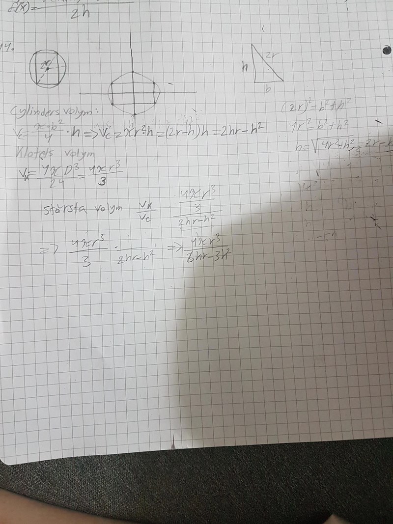 Uttryck klotets volym som funktion av R och cylinderns volym sfa R och fi.