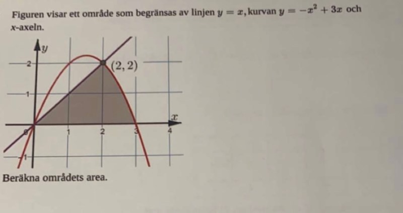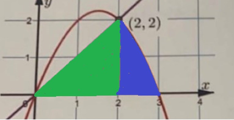 Den andra går från x=2 till x=3 och har funktionen y=-x2 + 3x