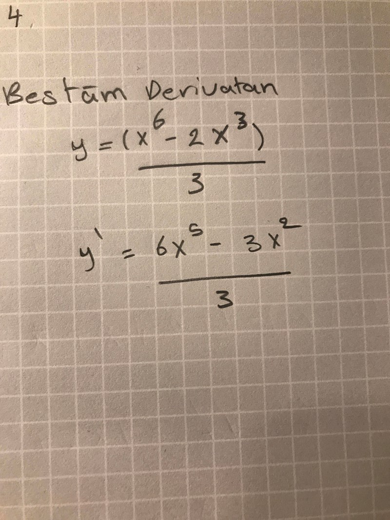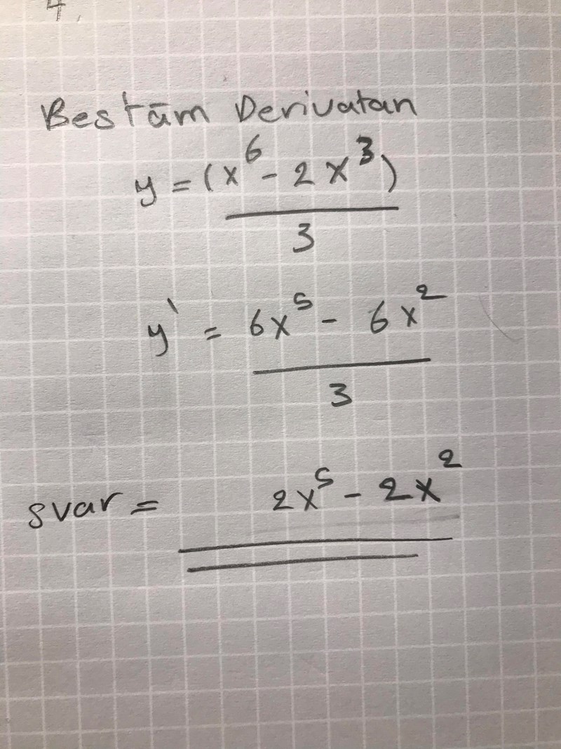 Bestäm derivatan till y=(x6 - 2x3)/3.