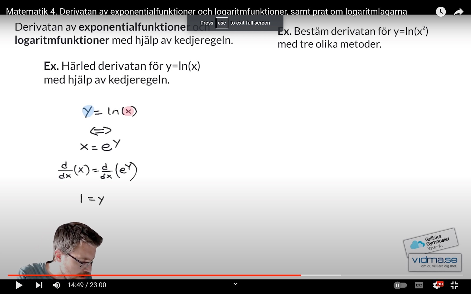 Derivata av exponentialfunktioner och logaritmfunktioner forts Pt. II