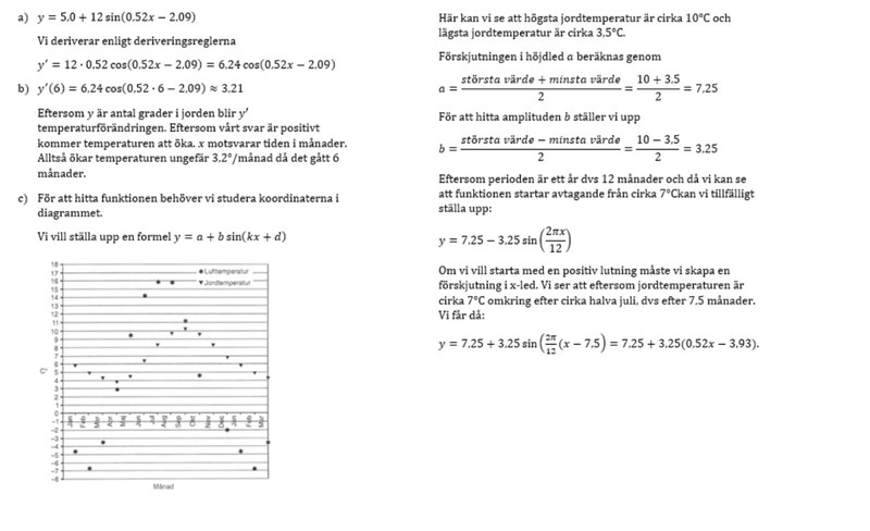 Hej, jag behöver hjälp med den här förklaringen på c,. Hur fick de fram 2pi/12? Nu var det ett tag sen jag räknade derivata men fick de fram k genom att ta 2 pi/perioden?