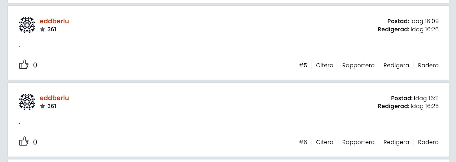 JohanF skrev:Kom ihåg att du får enligt reglerna inte bumpa din tråd inom 24 timmar. Det kan lätt tolkas som bump när du gör sådär.