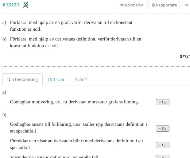 Generellt: ställ upp y' = lim h->0 för en konstant funktion y. Visa y'=0 #.