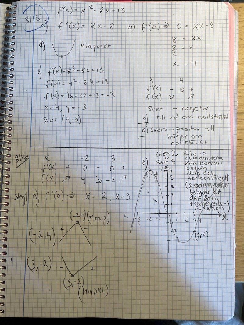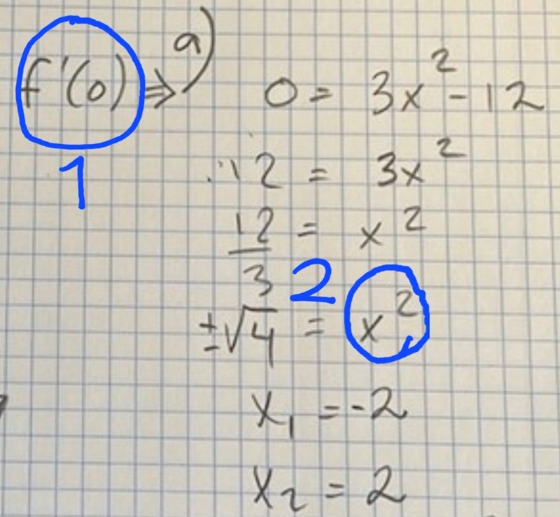 Där du skriver f'(0) ska det stå f'(x) = 0.