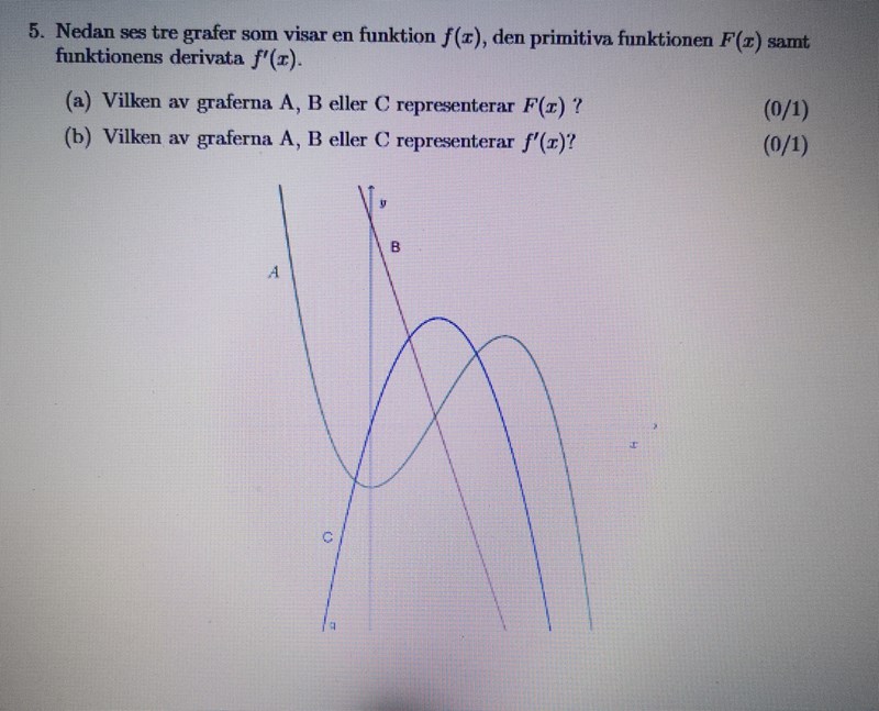 cjan1122 skrev:R.i.Al skrev:cjan1122 skrev:Har kanske lite med formuleringen i uppgiften att göra. Derivatan till A är C (grad 3 till grad 2) men det är inte f'(x).
