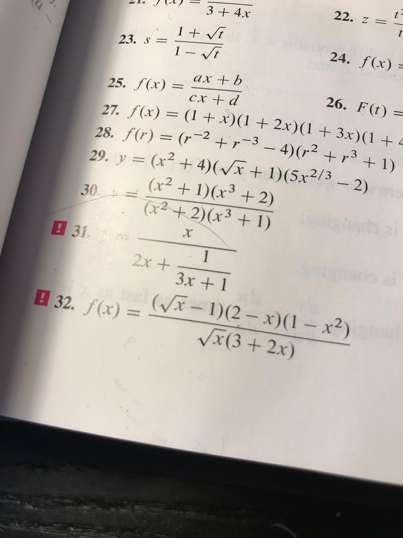 Hej jag har kört fast på hur jag ska derivera funktionen i uppgift 32. Jag förstår inte hur jag ska kunna göra det utan att få ett hav av termer. Hur deriverar jag den på ett smidigt sätt?
