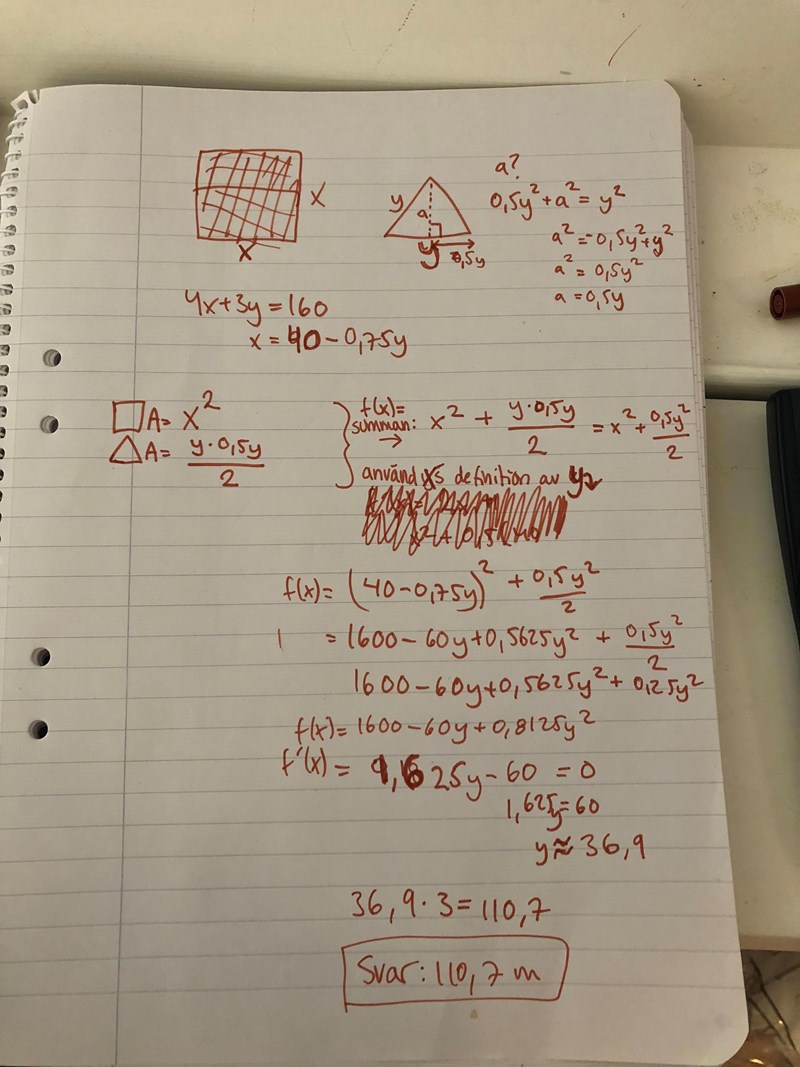 Ja precis, det var arbetsgången gjordes men fick inte rätt svar:/ tänkte om någon hade uträkningar som var rätt så kunde jag jämföra mina egna