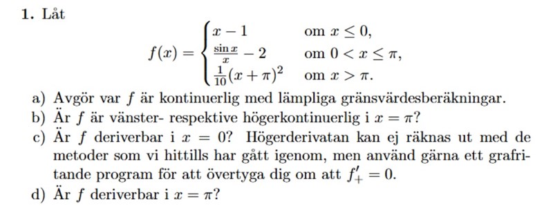 Jag blir lite förvirrad av HL och och VL.. jag tror jag förstår att gränsvärdet är kontinuerligt i x=0 eftersom jag får ut det från rad (1)..? men hur får de fram att det inte går med x=pi..?