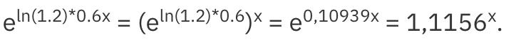 Men fattar inte hur jag får e^0,10939x till 1,1156^x. Är det Ln( e^0,10939x) som flyttar ner konstanterna och behåller x i exponenten???