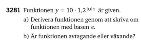 Du kan nu derivera funktionen med hjälp av deriveringsregeln för .