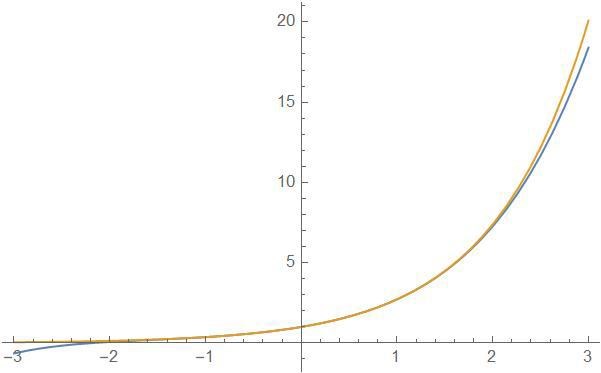 Om vi utvecklar till en högre ordning kommer approximationen bara att bli bättre och bättre men som sagt, jag valde att sluta efter .