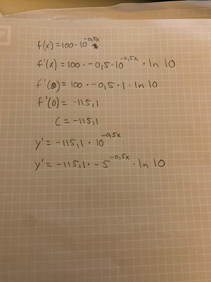 Du vill hitta ett värde på k sådant att ekx =10-0,5x, dvs att (ek)x = (10-0,5)x.