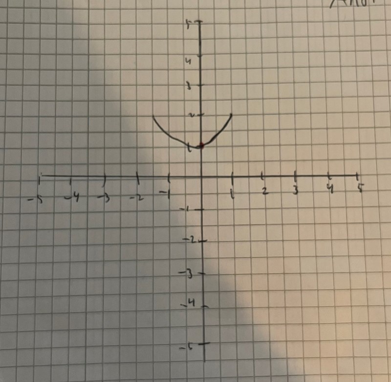 - Du vet att detta är en minimipunkt, så grafen är en parabel som liknar ett U (smilie face) och att den lägsta punkten är (0, 1).